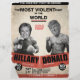 Hillary Clinton and Donald Trump fight to be President of the United States of America. Biggest fight in the world! Biggest fight ever! Funny retro vintage boxing poster for Presidential Election 2016.