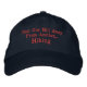 The design was easy to do with a number of options both the hat style, color and so forth. These aren't some printed letters, these are the real deal stitching. The two hats arrived quickly. I've used Zazzle in the past for shirts a number of times and this is the first time for a hat. Zazzle is absolutes the best in every respect; customer service, product selection and results. The embroidery was just right. My artwork was turned into a professional look thanks to Zazzle.