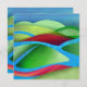 An abstract landscape with vibrant colors and textures showing hills floating on ice in shades of green, blue, cyan, red, and pink.