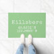 Minimalist doormat with Hillsboro Oregon longitude and latitude coordinates in vintage typewriter font on light green background