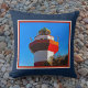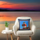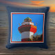 This pillow is dark blue (navy), and the lighthouse image has a red and white border.