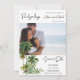 Watercolor palm tree design photo save the dates for your destination wedding in Hilton Head Island, South Carolina. Customize with your upcoming wedding details and your photo. Add more details on the backside of the card.