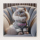 A fluffy Himalayan cat sits on a luxurious chair wearing a sweatshirt that says "Diva" in pink letters