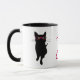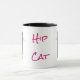 Fun ceramic mug with graphics of a black cat wearing hip pink cat eye glasses, on both sides of the cup. Pink text, on the front of the mug, reads Hip Cat. Great gift idea for any cat fancier or hipster.