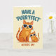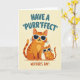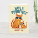 This card shows two cartoon-style cats posed close together on a soft pale yellow background, like a parent and youngster sharing a quiet, affectionate moment ❤️. The larger cat is orange with darker reddish-brown stripes, standing with an easy confidence while leaning slightly toward the smaller kitten. The kitten mirrors the pose, tucked in beside the bigger cat as if enjoying the closeness and attention. Both wear white-framed sunglasses with dark lenses, adding a fun, cool touch while their relaxed mouths suggest a gentle, friendly bond. Across the top, rounded teal lettering delivers a cat-themed greeting with a punny sound, centered above their heads. Along the bottom, warm terracotta text names the Mother’s Day occasion, placed neatly under their paws and tails 🌼. Fine details like soft shading in the fur, crisp whiskers, and a small highlight on each lens stand out against the creamy yellow backdrop.