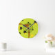 Hip Green and Black Geometric Circles Pattern Round Clock