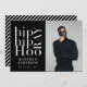 Hip hip hooray modern photo typography graduation announcement and party invite. Featuring bold typography and on trend stripe background, color can be altered.
