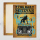 He rocked it. And now all that’s left is the final move: thanking everyone who came out for the event. This invitation is perfect for hip-hop, rap, dance or music-themed bar mitzvah boys. An old school boom box is the focal point with B Boys and B Girls surrounding it – in various dance poses. A retro blue pattern winds its way in the background, anchored by a distressed golden hue. And two Stars of David bookend the main title. All of the printed information can be customized…just fill in the fields!