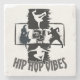 This image features a graphic design with a strong urban vibe. It's a black and white composition with a central focus on the word "DJ" in bold, stylized lettering. Surrounding the "DJ" are four silhouettes of break dancers, each frozen in a dynamic pose, showcasing the energy and athleticism of the dance style. The word "HIP HOP VIBES" is prominently displayed at the bottom, further solidifying the theme. The design incorporates a grunge aesthetic with brushstrokes and textures adding a raw and edgy feel. The overall impression is one of rhythm, movement, and the cultural power of hip hop.
