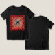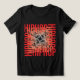 A bold and energetic t-shirt design featuring the word "HIP HOP" repeated multiple times in various sizes and orientations. The words are arranged in a swirling vortex pattern, creating a dynamic and visually striking effect. The use of contrasting shades of red and white adds depth and intensity to the design.