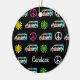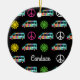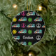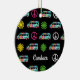 Cute hippie Christmas ornament gift with fun retro camper bus pattern of peace signs and pretty flowers in cool neon hippy colors.