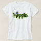 Proclaim your hippieness with this tee shirt with the whimsy word hippie in black and outlined in bright lime green. The graphic word art hippie has the first i dotted with a flower, outlined in purple in a whimsy 70's style. Celebrate the hippie attitude and way of life and wear it for fun as a retro throwback to the late 60's and early 70's. The colors are black, lime green and lavender purple. Fully customizable to make it your own. Original art is by Phyllis Dobbs.