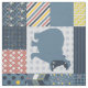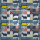 Attractive faux-quilted pattern of hippos and blocks of coordinating prints by artist L. Holloway