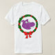 This shirt shows the head of everyone's favorite Rollerskating Hippo floating in a Christmas wreath. The back says, "I want a Hippopotamus for Christmas"