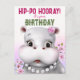 Hippo Pink Floral Girl Birthday Postcard