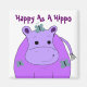 A cool purple hippo with a cute saying. Little blue butterflies landing on the hippo.