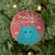 A cute hippo with a sweet face on a holiday red background with snowflakes. Customize as desired.