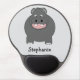 This hippo design mousepad is a flat surface designed for placing and moving a computer mouse, enhancing its accuracy and usability. It provides a smooth, consistent surface for the mouse to track, especially on uneven or less-ideal surfaces, and it often protects the desk or table underneath. This mousepad has the added addition of a gel pad to rest your wrist on whilst controlling your mouse. You can customise this gel mousepad with any text of your choice. Should you require any help with customising then contact us through the message link on this page. Hippopotamus design gel mouse pad.