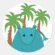 Hippopotamus with Palm Trees Classic Round Sticker