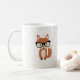 Adorable cute baby fox cartoon graphic animal with hipster glasses on his face and fall colors. A trendy and fun reddish brown orange fox sitting with a poufy tail, learning and reading with his spectacles.