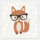 Adorable cute baby fox cartoon graphic animal with hipster glasses on his face. A trendy and fun reddish brown orange fox sitting with a poufy tail, learning and reading with his spectacles.