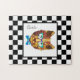 Hipster Bear on B&W Checkerboard, personalized Jigsaw Puzzle