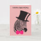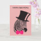 A cute and hip design of a Zebra animal illustration wearing a top hat and bow tie against a blush pink background The background colour is customisable.This trendy and humorous design is fun and cool and suitable for zebra lovers everywhere. This card has a Happy Birthday greeting, but can be easily customised to any suitable greeting eg: Thinking of You, congratulations, etc...