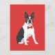 Hipster Boston Terrier with Red Glasses & Bow Tie Postcard