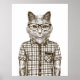 This design features a cat dressed in a flannel shirt and eyeglasses.