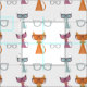 Hipster Cats in orange, pink and blue with glasses