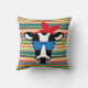 Add some fun and color with a modern hipster cow in sunglasses with red bandana on a multicolor striped background.