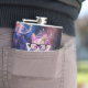 Well made flask, a little better than I had expected. Flask came in clear plastic box which gave it a nice presentation when I took it out of the zazzle packaging. Image is not printed on flask but on sticker. Don't know how this will hold up I haven't used it yet. This would make a Great gift! I plan to purchase more for friends! Cheers. I thought a little brighter than computer. Very crisp, writing wasn't