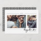 This New Year's holiday card features a collage of two of your favorite photos in the center. The phrase "happy new year" in a modern handwritten script sits above your name in black. The year is centered at the top in between two horizontal lines. The back features a black and white geometric pattern.