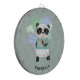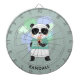 A personalized dart board featuring a hipster panda eating an ice cream cone. Edit the sample name shown with your desired name or other text.