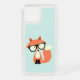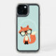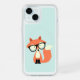 Adorable vector illustration of a cute red fox wearing an oversized pair of reading glasses on a mint green background. Add a name or monogram for a one-of-a-kind gift.