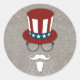 Imagine Uncle Sam as a hipster. This invitation brings that idea to life with a graphic representation of one of the USA's symbols as a modern day hipster. The glasses are a requirement along with the curly mustache. He keeps his star spangled top hat and long beard. The image is made urban by printing against a grungy concrete background. Available with matching products.