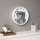 Hipster wall clock | Geeky owl with glasses. Cool gift idea for trendy owl lover men and women. Black and white photo design.