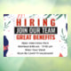 Hiring Join Our Team Help Wanted Custom Window Cling is a great ad or sign for your business when hiring new employees. It is colorful and inviting to look at. It will help you spread the word that you are hiring. Personalize it for your business for hiring and interviewing prospective employees.