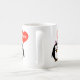 His and hers penguin mugs | matching set. Cute home decor for just married newly weds / husband and wife couple. Romantic gift idea for newlyweds / bride and groom. Also fun for wedding anniversary. Custom background color behind red heart. Double sided design. Cute animal bird cartoon with red heart balloon.