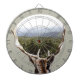 A digital painting of a buck's head with a view of tree filled hills held between his antlers. This image has no background, you may choose a different background color than what is selected.