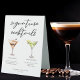 This his and hers signature cocktails list features simple black typography above 2 drinks and their ingredients for your wedding bar. An espresso martini and classic martini drawing add a cool flair to your bar menu table tent sign. Complete with the couple's names and date for their reception.