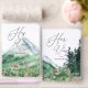 A romantic mountain-inspired vow book set designed for couples who feel most at home in nature. This His and Hers pair features a soft watercolor landscape with wildflowers, rolling green hills, and a serene alpine peak. Elegant foil typography in your choice of gold, silver, or rose gold adds a refined, heirloom finish.