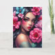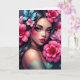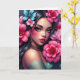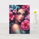 Let a friend know you are thinking about them with this beautiful card featuring a Hispanic or Latina woman with pretty pink and blue flowers in her hair. Stunning digital ai art.