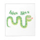 A dark and light green snake with red forked tongue and green text that reads Hiss Hiss on T-shirts, mugs, bags, cards, pillows, magnets, and more, great for kids and adults.