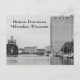 Black and white photography of historic downtown milwaukee, with boats all alongside lake michigan