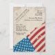 A grunge design featuring the American flag against a tan on tan background. Perfect as a welcome home military invitation, military going away invitation and all national holidays.