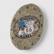 Place a conversation piece on your man cave, workshop or garage wall with this custom 10.75 inch diameter acrylic wall clock sporting a nostalgic Winslow Arizona Route 66 oval sticker-like design over a sandy textured background. The oval design collage is comprised of a photograph of a well house wall along a walkable segment of Route 66 in Parks, AZ as the background and the two emblems are from a photograph of the Arizona Historic US Route 66 sign. The sandy background and numbers are template items so you can clear them if you'd like this clock design without numbers and a solid background color. Click the orange Customize it! button to add text like a name, family or business name or quote. Be sure to check out the smaller 8 inch diameter and 10.75 inch square options for the design.