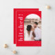 A fun colorful wedding elopement announcement with the headline "hitched!" in pink bold font and your favorite wedding photo in an arch shape on a red background. The reverse is in solid red and includes an optional editable message in pink.