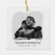 A chic square ceramic ornament with a painterly brush-stroke photo window and a bold “Hitched & Bewitched” caption. Add your names and year beneath to mark the moment. The clean black-and-white look flatters wedding or engagement portraits and pairs with any tree or gift wrap. Perfect for newlyweds, anniversaries, or a romantic keepsake to display on a stand all season long.