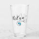 Drinking glass with Hitra flag in a heart, with scripted font design.